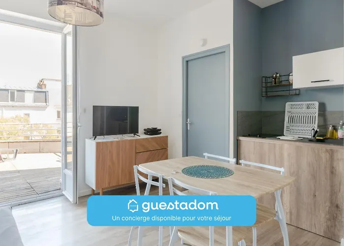 Das 1-Zimmer-Apartment Terrasse Du Maine - Centre Ville - Wifi Saint-Nazaire befindet sich 6 Minuten Fußweg vom Les Trois Pierres dolmen entfernt sowie in unmittelbarer Nähe zu verschiedenen Sehenswürdigkeiten der Gegend. Diese 35 m² großen Apartments verfügt über eine Terrasse, die einen Blick auf die Stadt bietet.